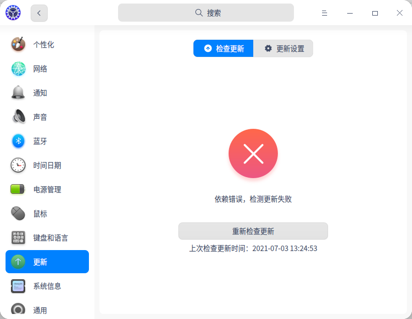 系统更新下载之后,点击更新后失败提示“依赖错误”