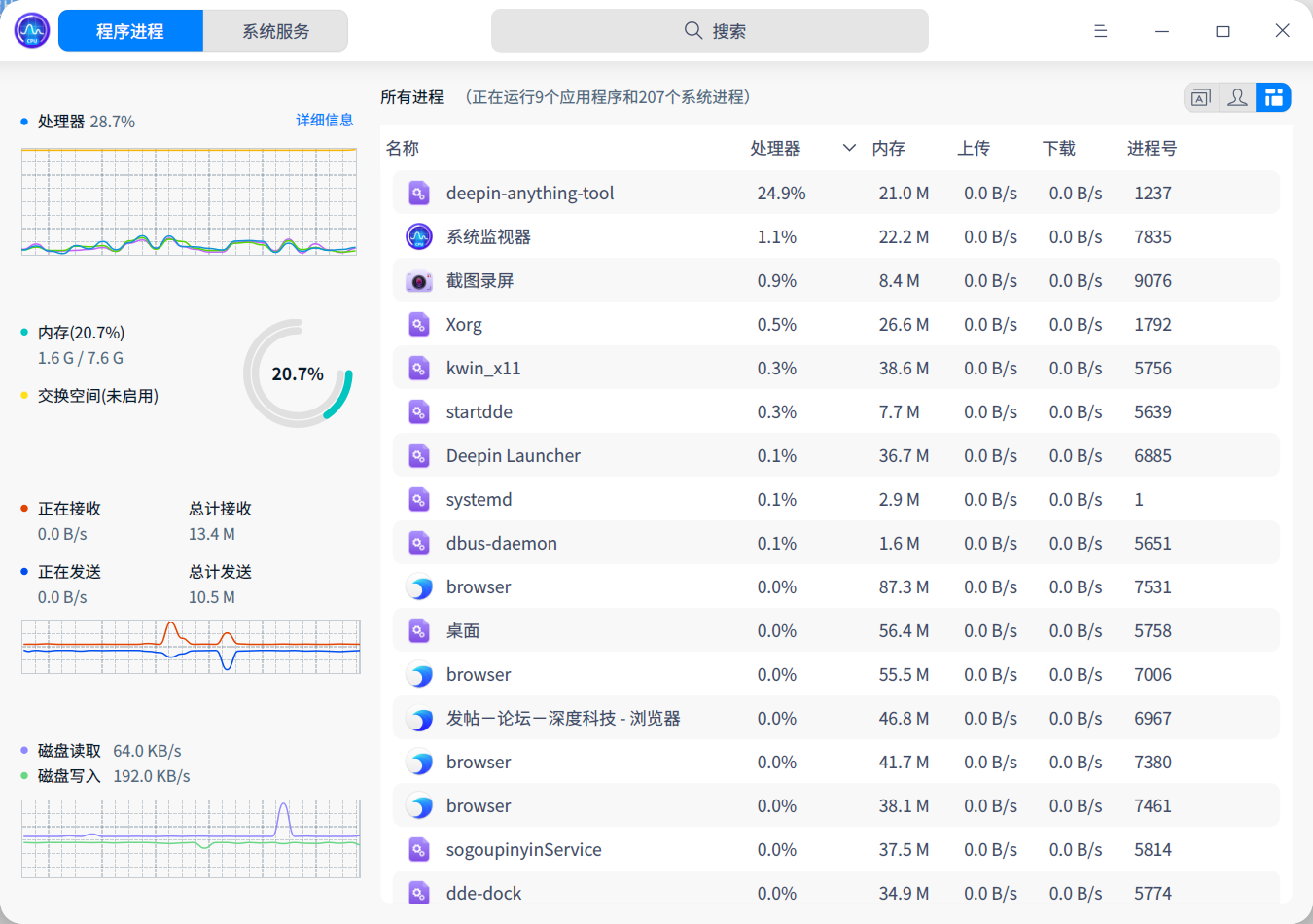 deepin-anything 是用来搜索文件的,所以有时候会创建和更新文件索引,在系统空闲的时候,这会导致 CPU% 达到 100%,正常情况下过一段时间后就会下降至 0% 左右。