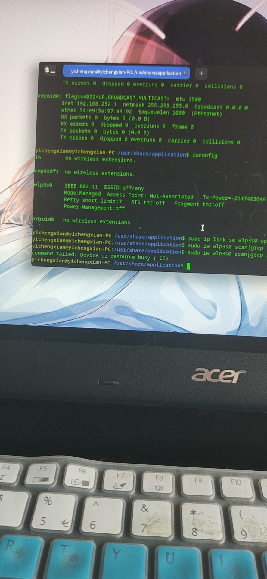 随便试了一下模块dock栏不见了,桌面点击无响应,按win键无响应,尝试再去update一下告诉我没网,尝试去连接wifi告诉我设备繁忙,快捷键全部没用,命令行是偶尔可以右击鼠标点开的。