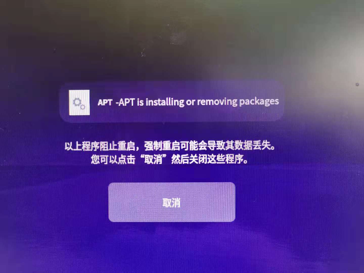这个提示很清楚啊,APT在运行。在安装软件包?在更新?