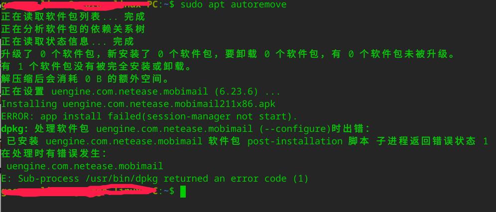 卸载时出错无法卸载,用apt upgrade 也卸载不了,用autoremove 也不行。