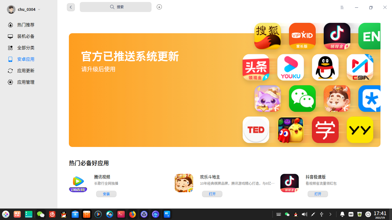 先windows11一步,让用户体验了电脑端的安卓应用虽然说适配的软件不太多,但貌似一直有推送新适配的软件,抖音极速版和抖音火山版还有斗地主和消消乐都已经上线,
