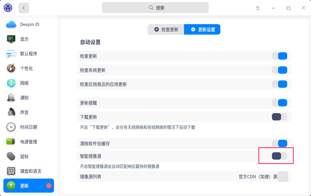 设置中的更新,一直出错。怀疑是使用了星火商店的更新源出现了问题。现在要改为默认的官方的源,要怎么办呢?
