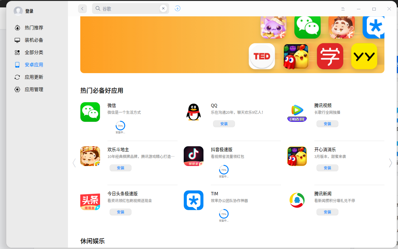 系统社区版20.2.2,内核5.10.36。应用商店安卓应用卡在75%,只能手动命令重启系统