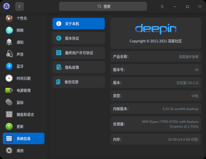 deepin20.2.2在ThinkPad T14 AMD版本设备上,合盖后开盖,画面就卡死完全无法使用,鼠标正常,但无法点击任何按钮。