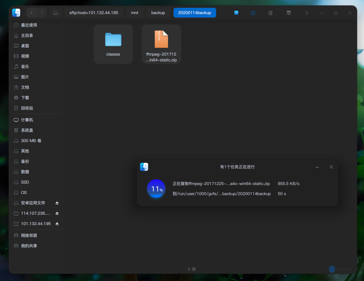 sftp传输速度是真的慢,我用filezilla 10M/s,用dde-file-manager的sftp只有1M/s不到,希望官方尽快优化。。。。。