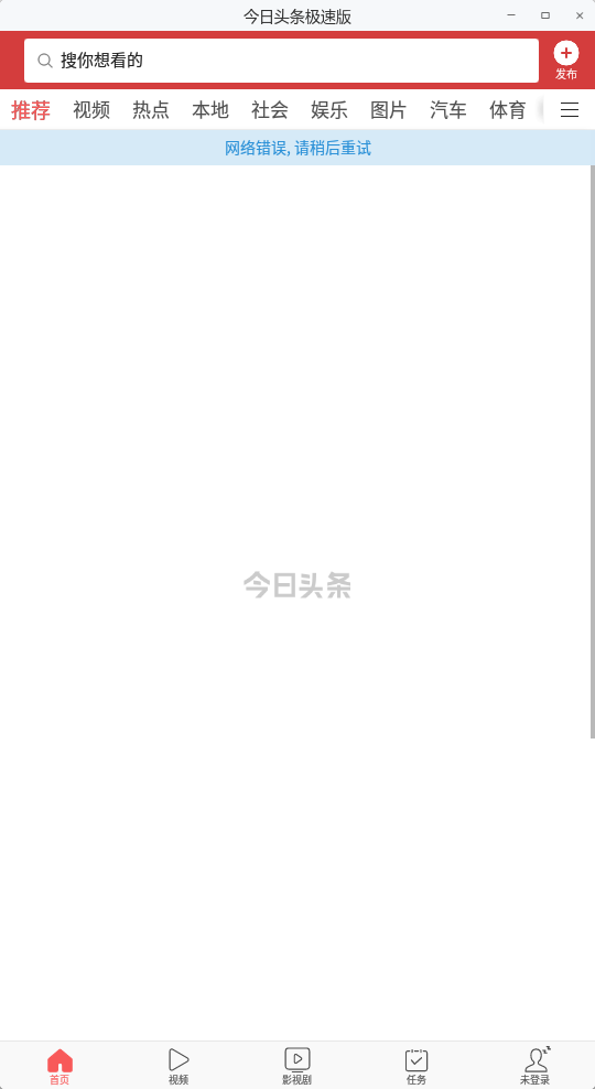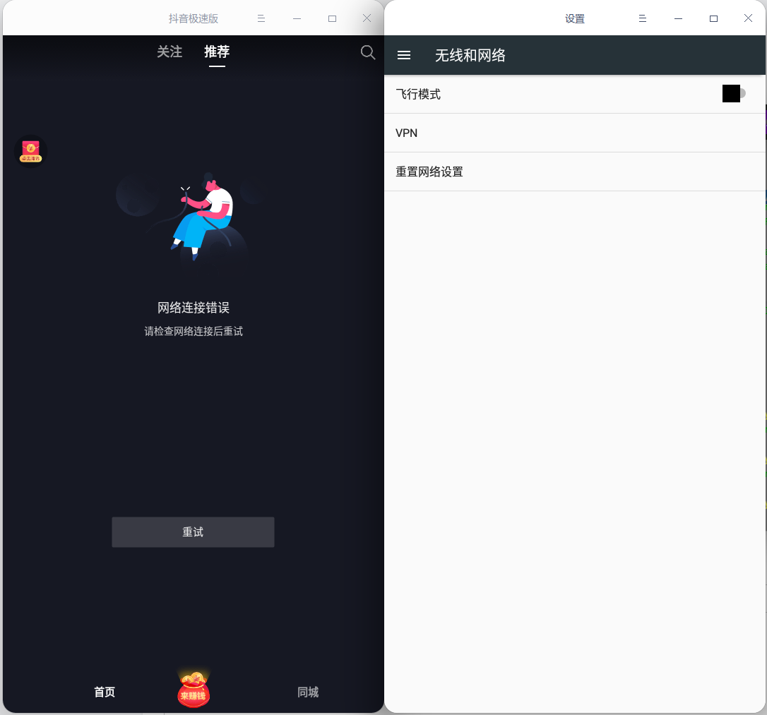 在应用商店下载了Android应用,今日头条极速版1.0.0,使用应用商店打开和使用启动器打开均显示无法连接到网络。