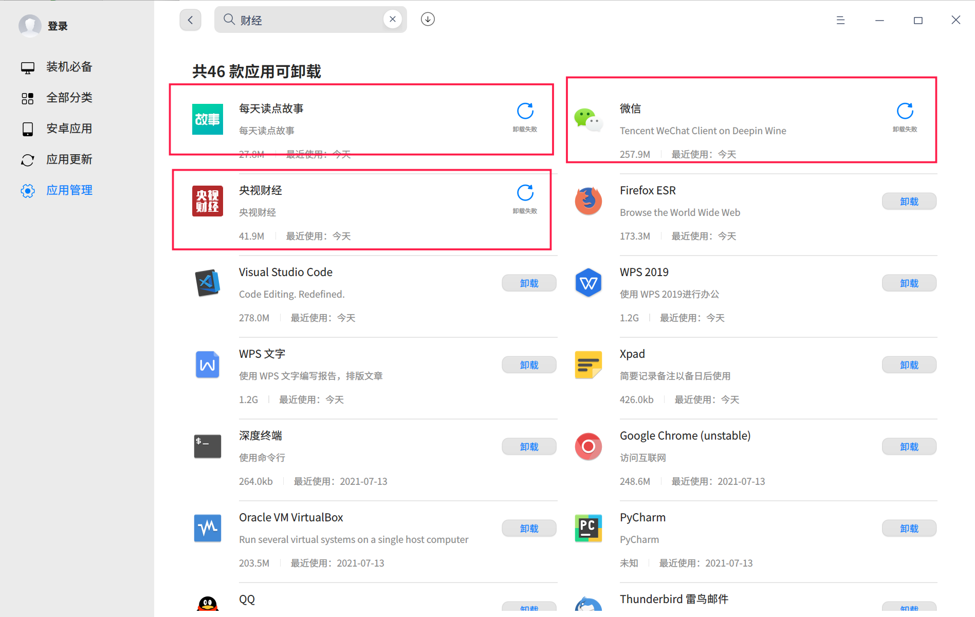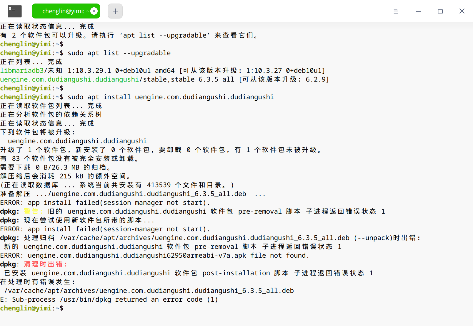 我通过商店安装了软件包,现在无法安装也无法卸载了。如下图: