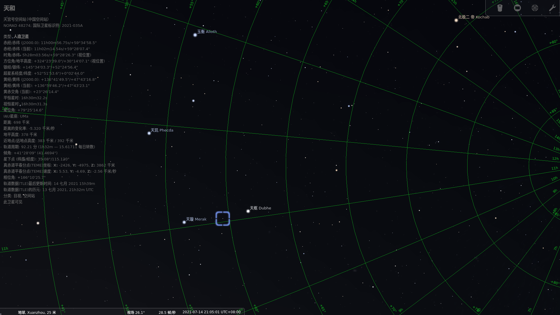 今晚21点05分,天和空间站会穿过天枢和天璇之间,非常便于观测。