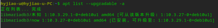 前面一行写的是:10.3.29.1-0+de10u1 可以升级到 10.3.27-0+deb10u1