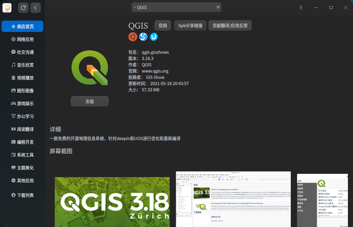 deepin一般办公软件已经配置的很好了,一些专业软件还是缺乏。QGIS是Linux下较好的地理信息系统软件,希望研发团队能解决这个问题。