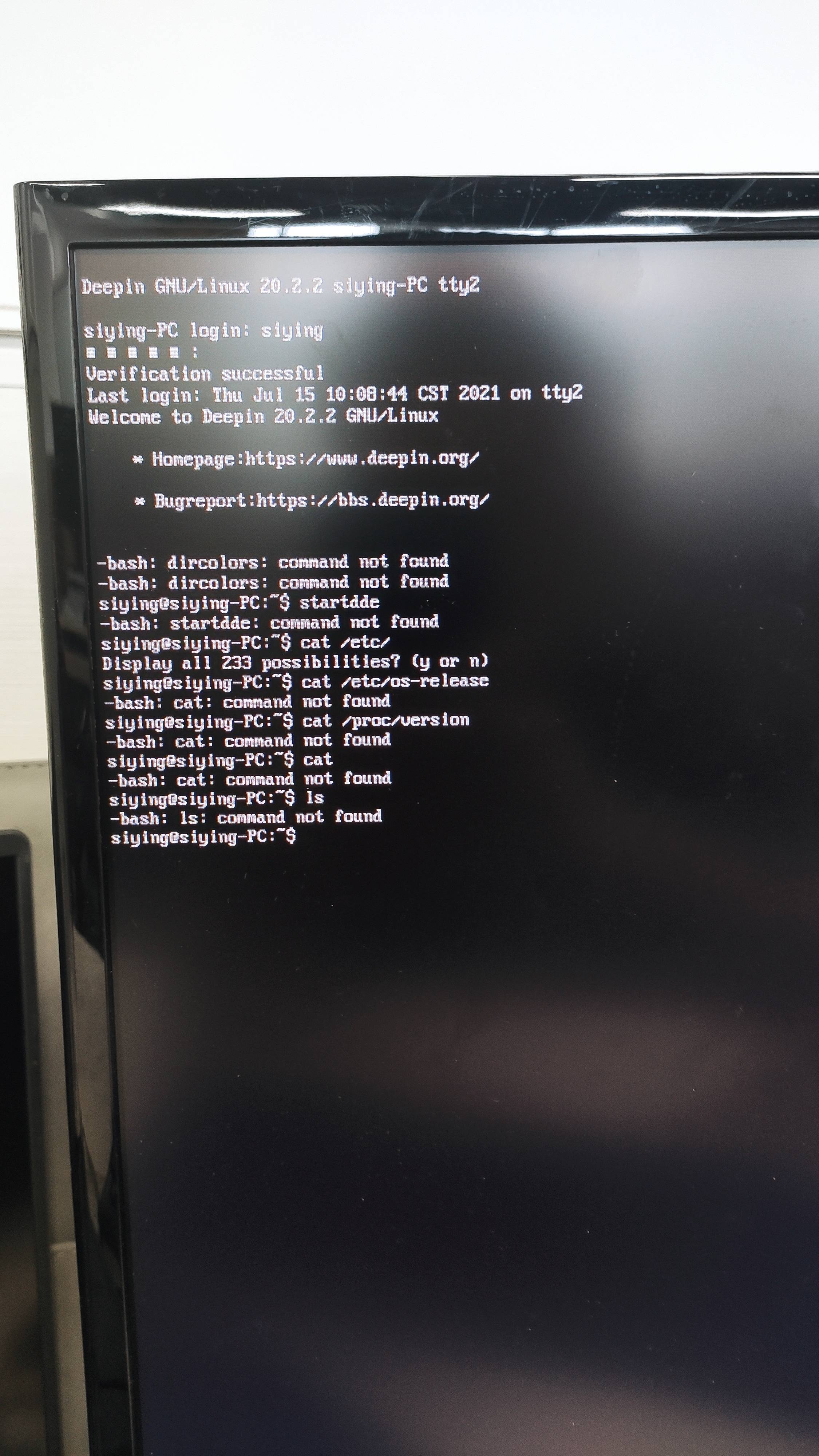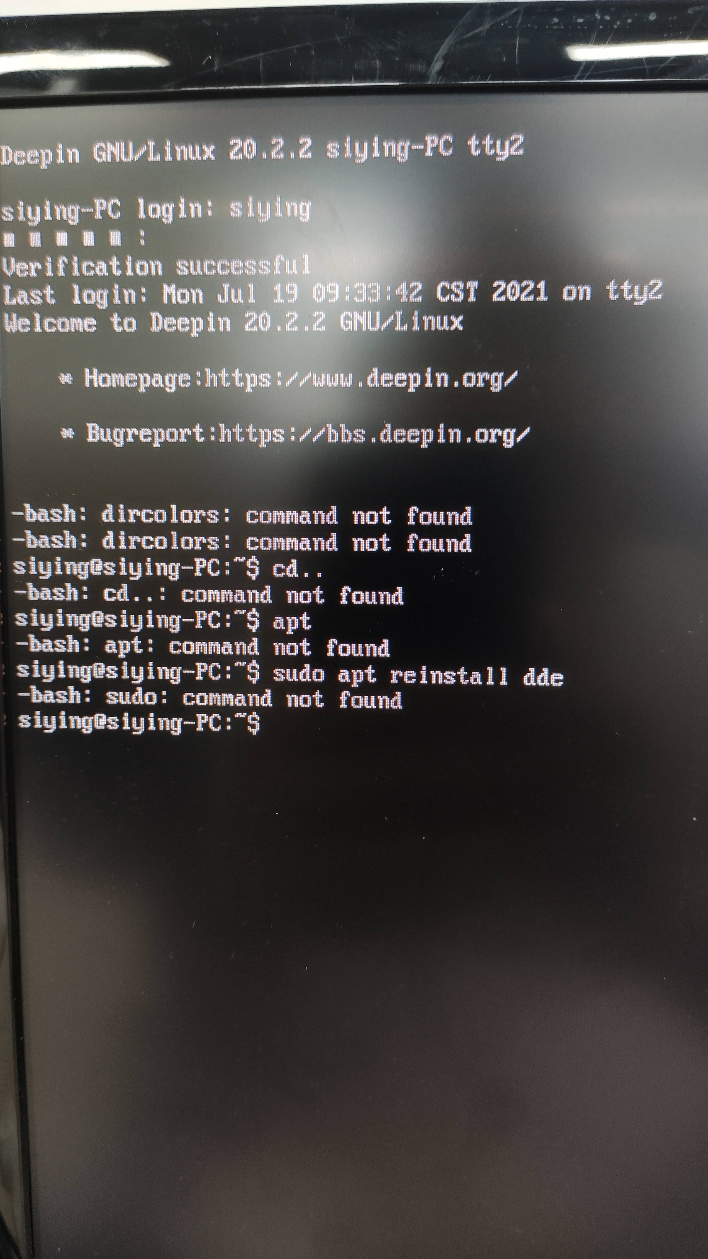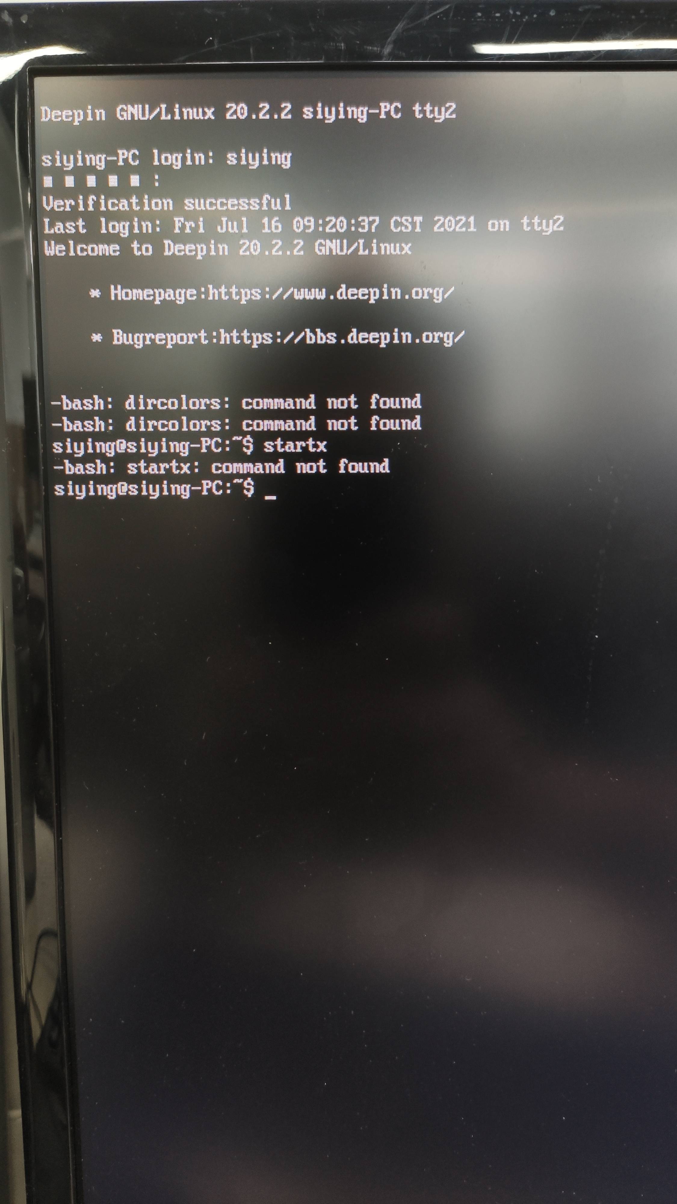 可以进入,但输入startdde后显示的是 bash:startdde: command not found,输入其他命令也是这样的