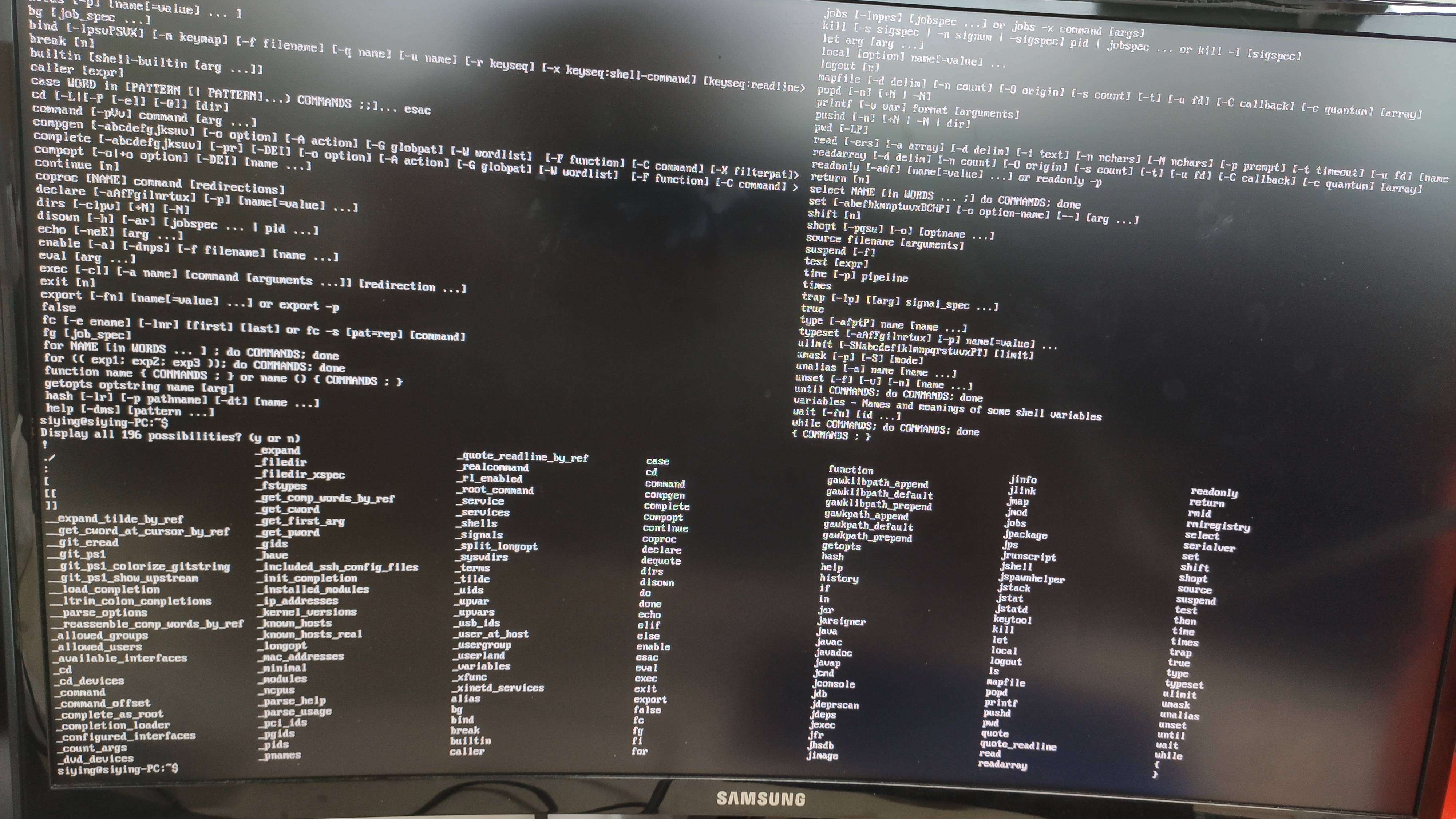 有,显示有196条,有些可以用,比如help、time,有些又显示那样的问题,比如直接输入 ls