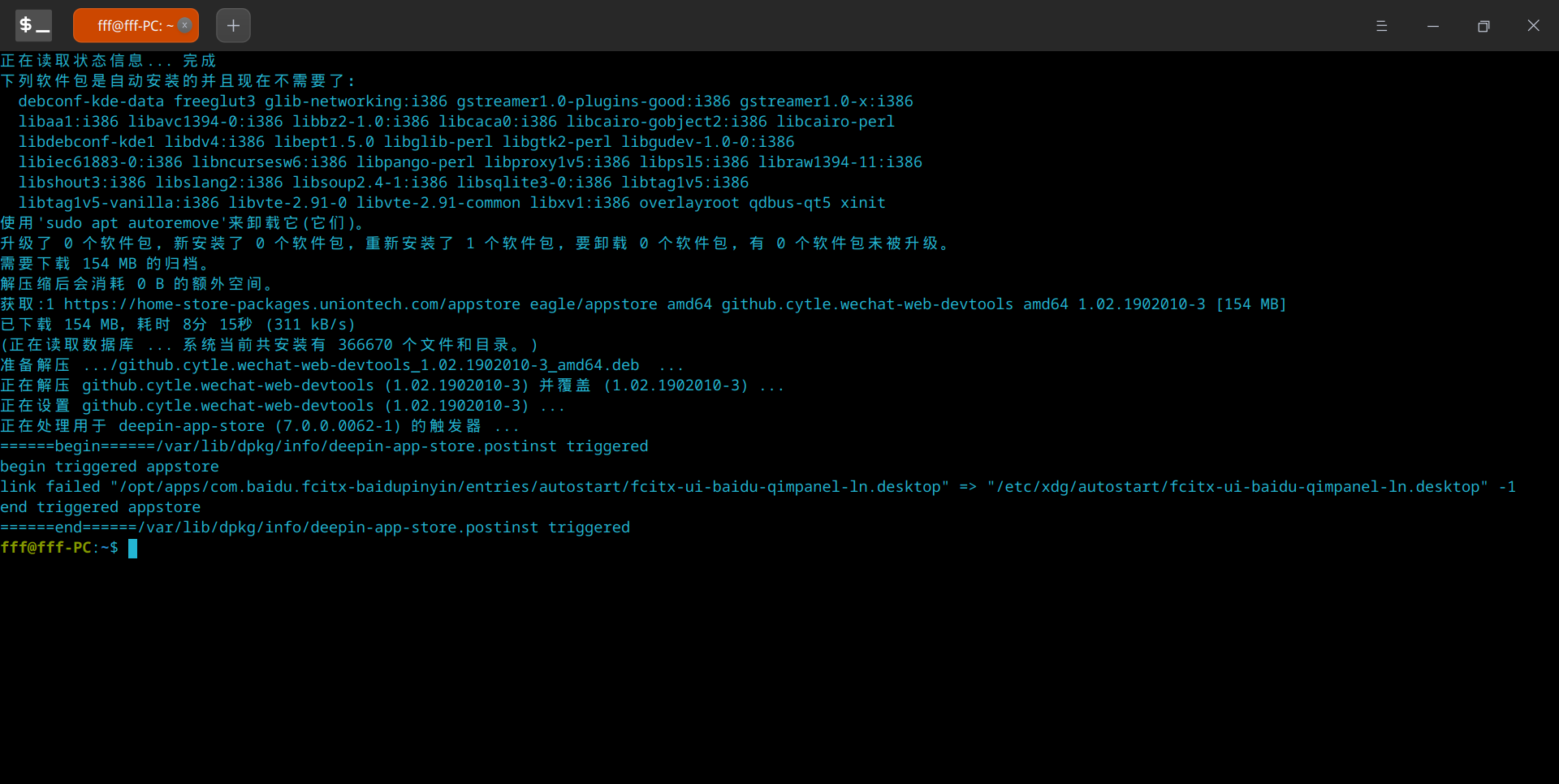 fff@fff-PC:~$ sudo apt reinstall github.cytle.wechat-web-devtools