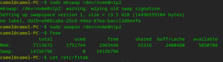 你的交换空间到底是/dev/nvme0n1p2还是/swapfile?