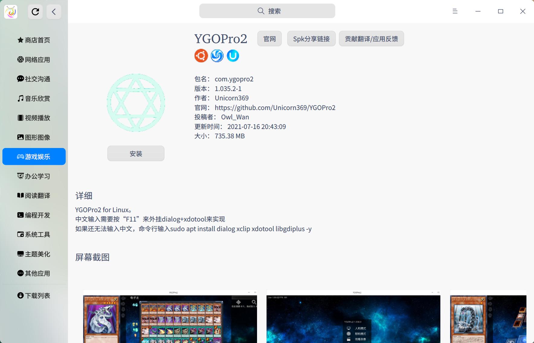 游戏王YGOPro2 Linux版以上架星火应用商店 。 有需求的可以下载。 希望能有喜欢游戏王的伙伴。