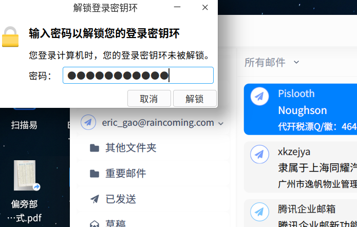 我在控制中心里选择自动登录之后,每次确实自动登录而不需要输入密码了,但是进去看到桌面之后,有如下的提示。一开始我还输入密码,后来我点两次取消,就不会出现了。不知道为何?