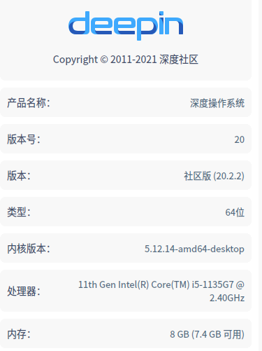 这个笔记本是没有独显的,在查找解决方法的过程中,看到了有网友说deepin对11代intel支持不好,也有人说内核升级到5.12会好,所以升级了一下内核,但是并没有解决问题
