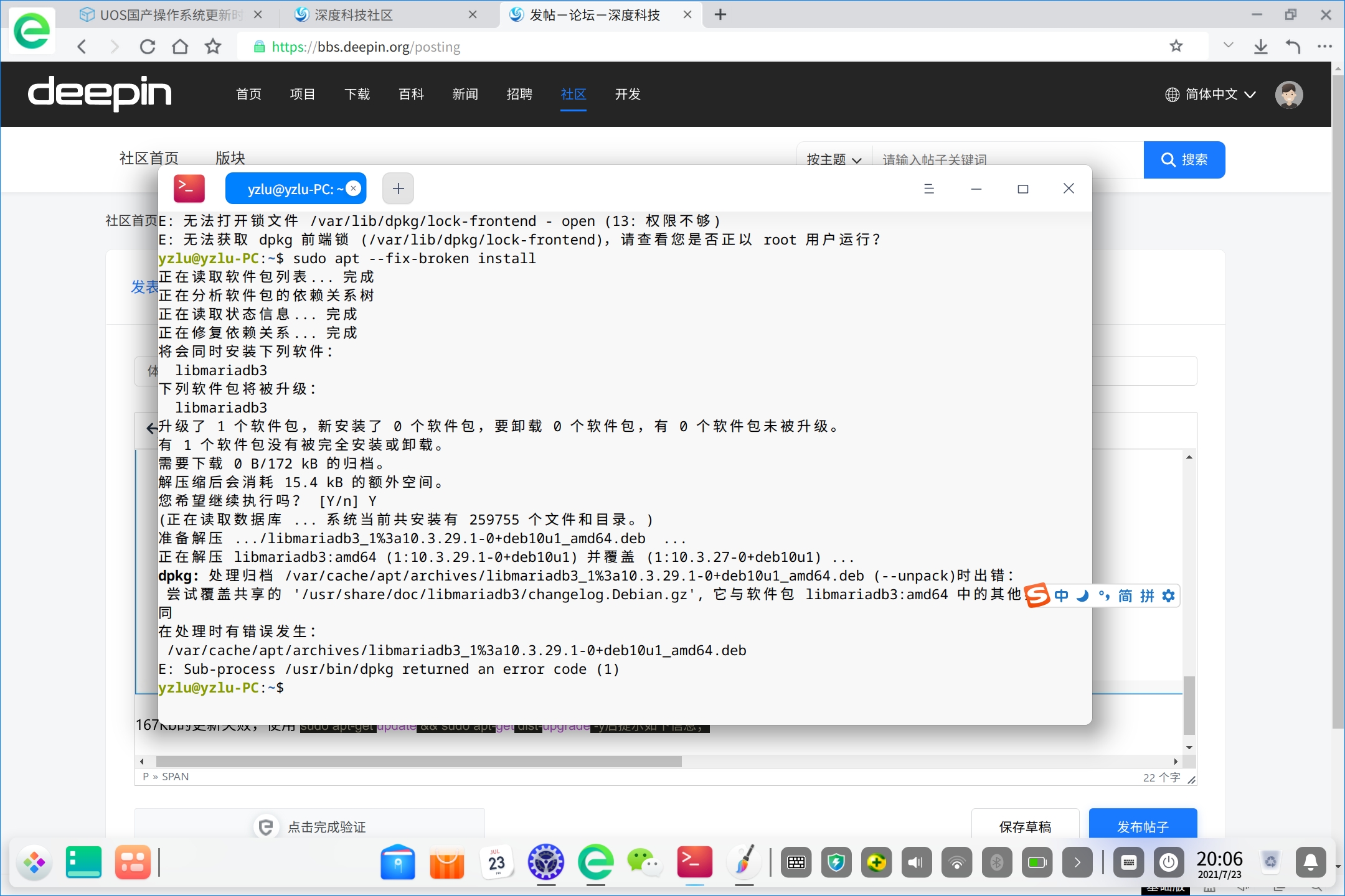 我把那个 changelog.debian.gz文件删除后,一切OK