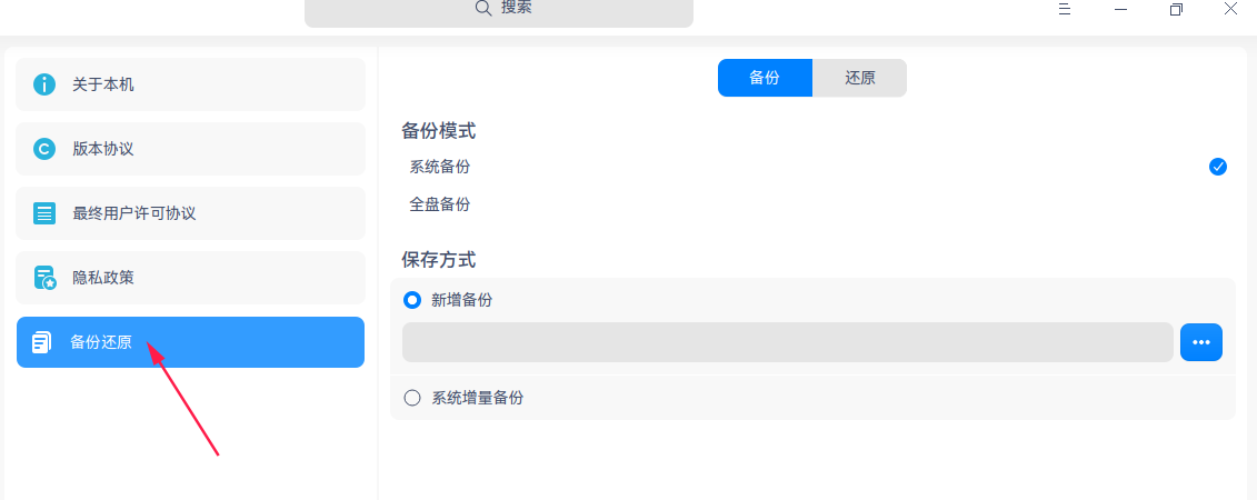 如果想使用官方的备份还原工具就得创建恢复分区,或者直接使用“全盘安装”。不这么做的话就算装上了备份工具也没法正常使用。