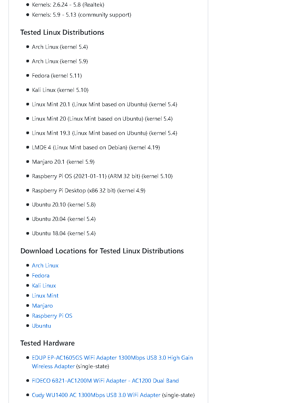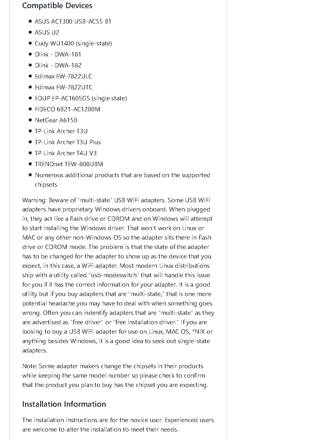 有没有支持的PCIE无线网卡的列表?
