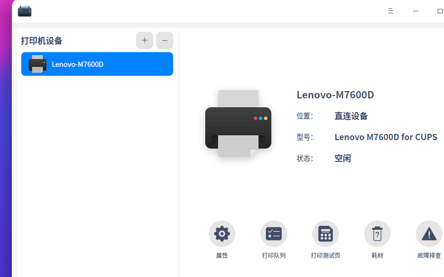 系统没有自带联想驱动,我在联想官网找的驱动安装好后点打印测试后打印机没反应,打印队列显示已完成。我真的很喜欢深度Linux,求大神帮助。