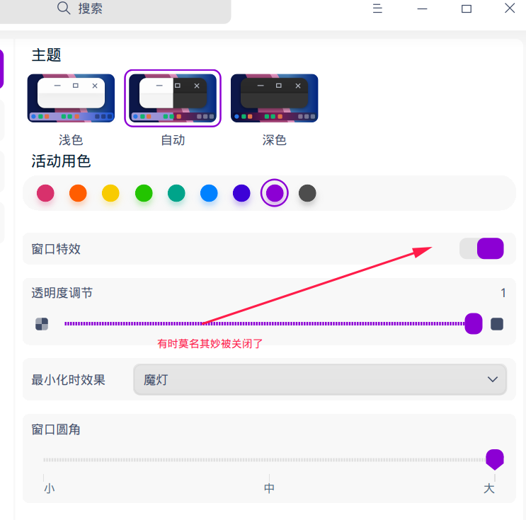 1. 窗口特效功能莫名其妙地自动关闭了,如下