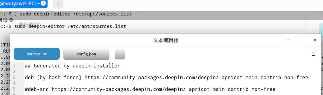1、将系统修改为内部测试源,终端执行以下命令:sudo deepin-editor /etc/apt/sources.list