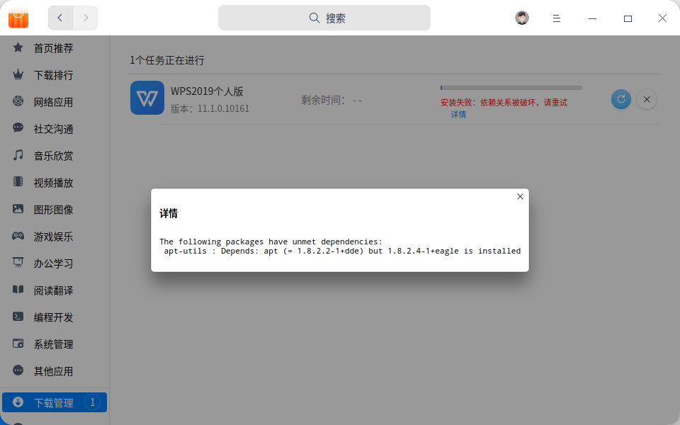 apt-utils:依赖apt(1。8。2。2+dde)但是1。8。2。4+eagle已被安装。