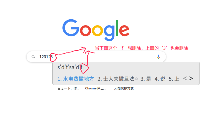 在使用Google浏览器时,当在搜索框中已有文字,然后再用输入法打字,