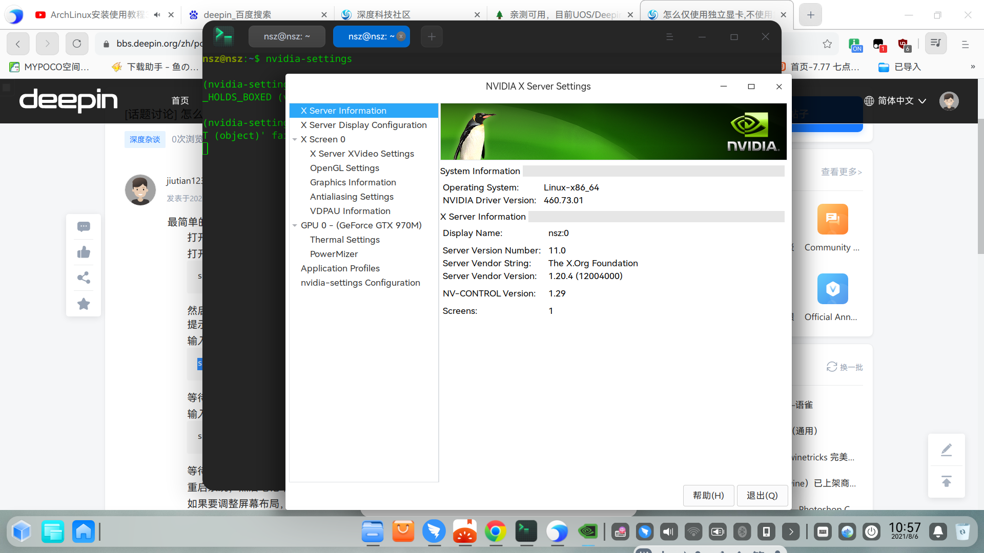 1.如果你是 Intel + NVIDIA 双显卡用户,接下来打开终端,执行以下命令: