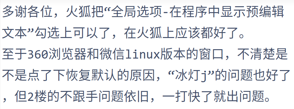 fcitx5-rime,在 firefox 中中没有这个问题(下面的 apng 图片不要用深度浏览器查看,chrome、firefox 都支持apng,深度浏览器还不支持)
