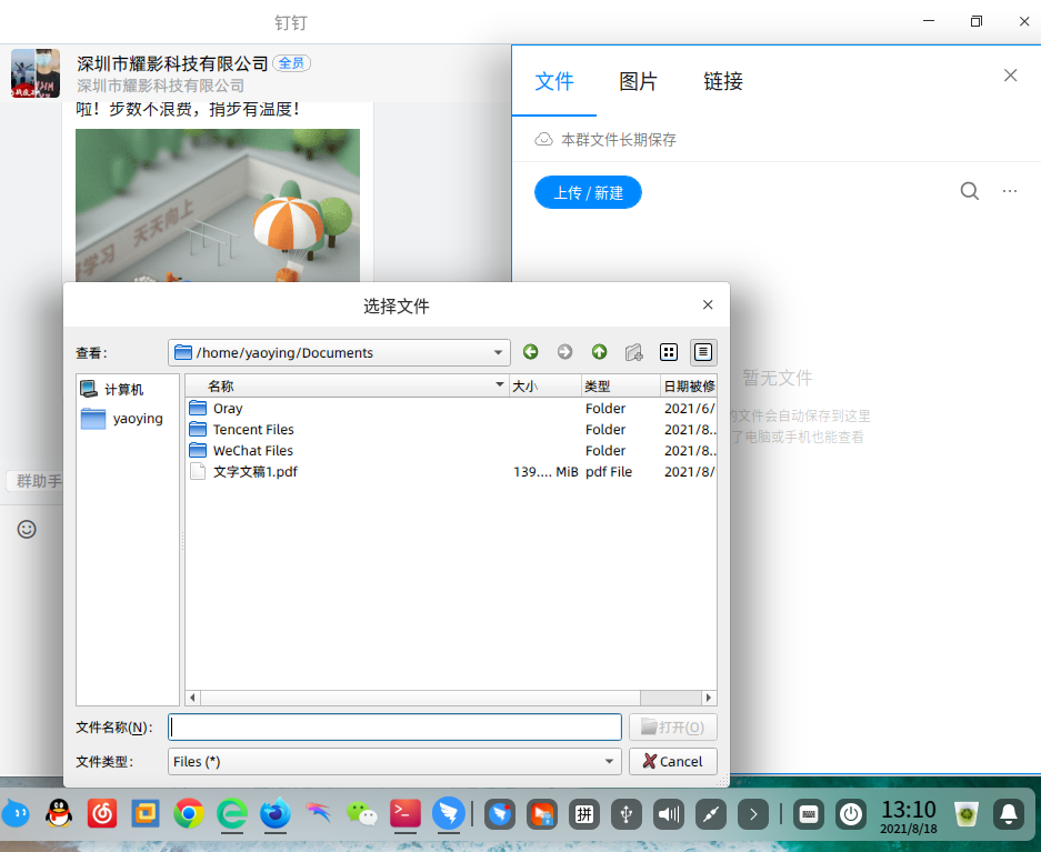 以下是钉顶LINUX版本的 文件上传调用的系统文管界面, 包括其它的一些软件有时候也不是DEEPIN文官,不知道何故