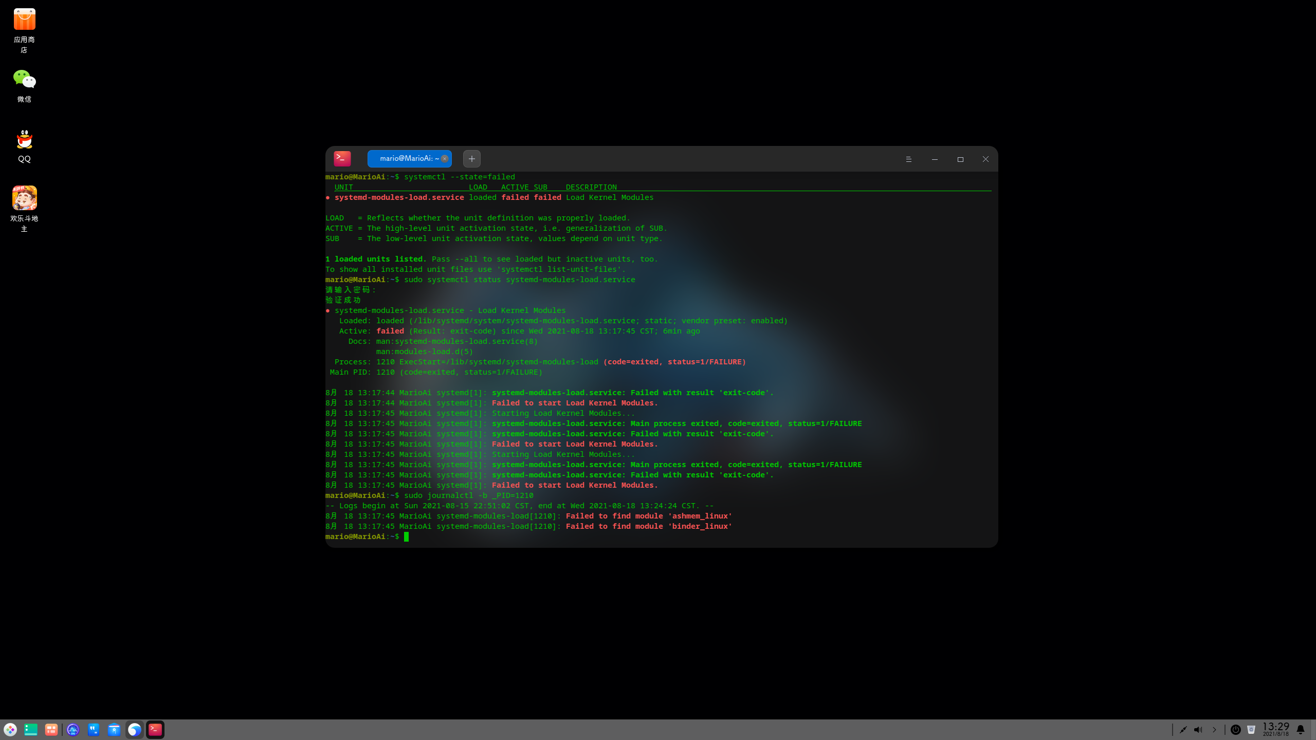 总是模块载入错误:Failed to start load kernel module
