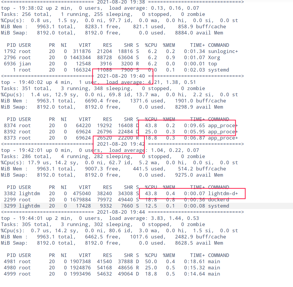 系统负载情况:今天大约在19:40分桌面卡死了,貌似安卓进程导致