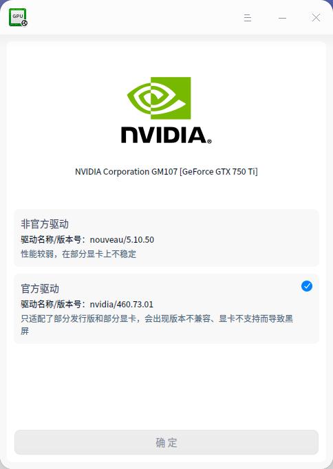 目前通过“显卡驱动管理器”切换的官方驱动460.73.01暂时没发现啥问题;