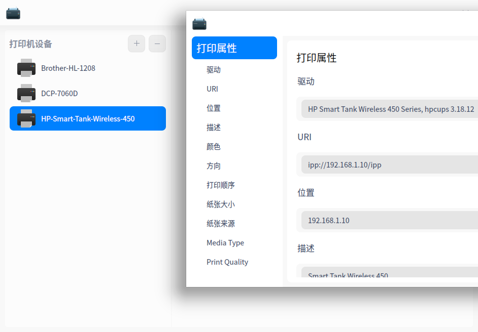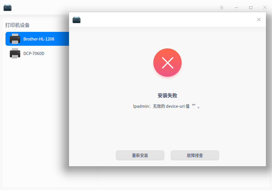 添加打印机失败,提示:ipadmin:无效的device-url值。我打印机型号:HP smart tank 519