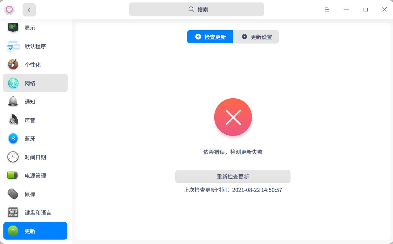 目前是deepin 20.2.2,想更新系统时,显示“依赖错误,检测更新失败”,怎么解决呢?求指导