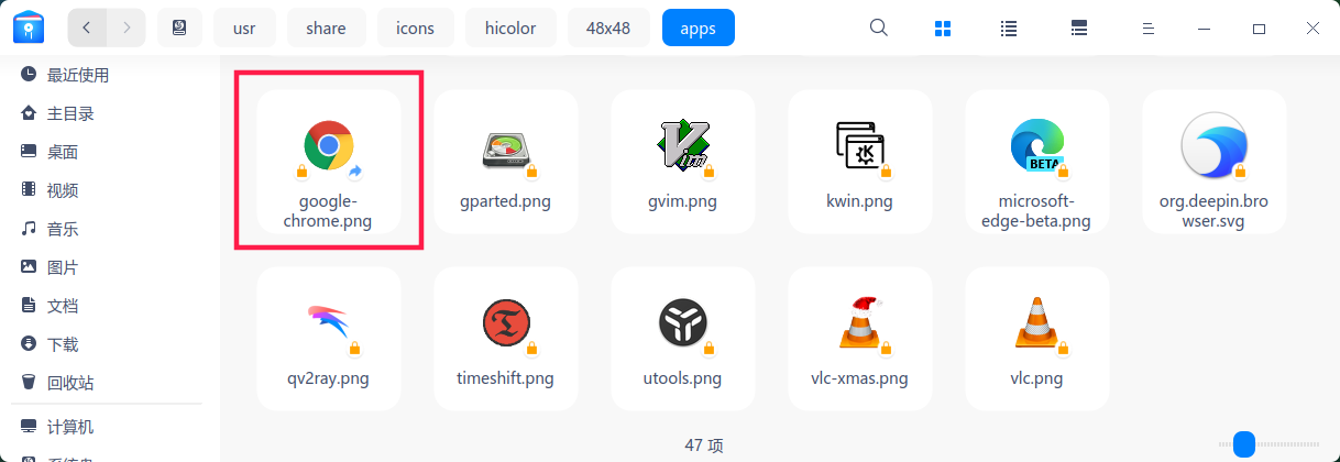 you need to rename the png file,google-chrome.png --> google.chrome.png.