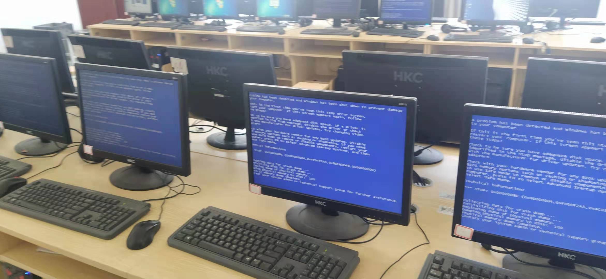 以前一个老师带课,用一间电脑教室即可,今年安排2位教师,混合配置的电脑教室整排开机就是这样了!!