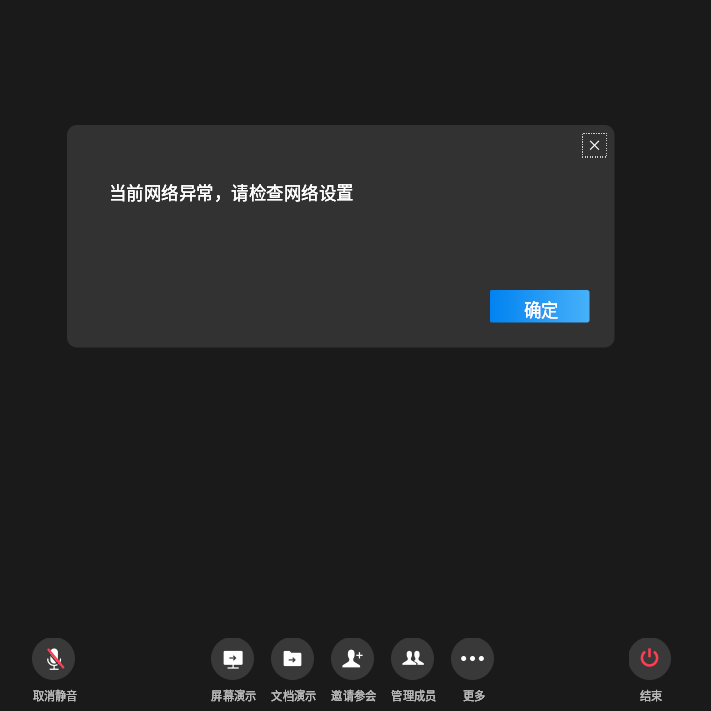 企业微信开会时,显示当前网络异常,请检查网络设置。
