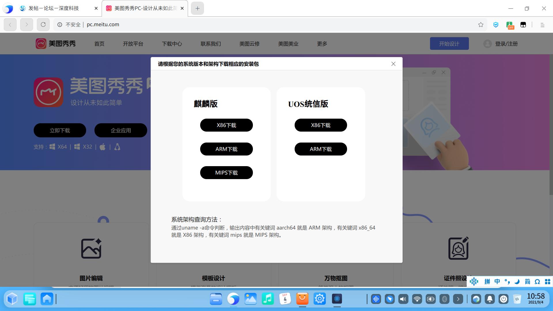 美图秀秀原生,uos和麒麟在uos上都安装 运行成功