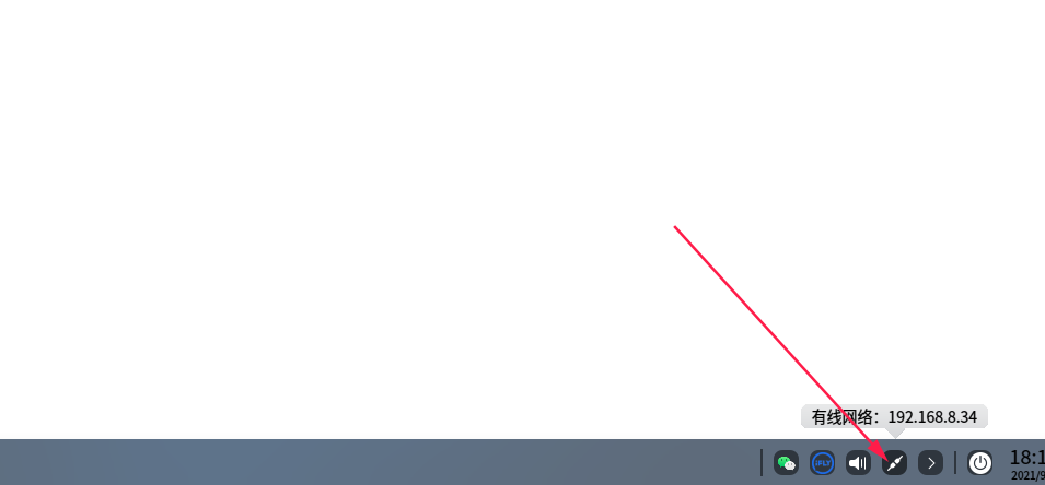 1、确保要共享的电脑在同一个局域网,并查看记下deepin的局域网IP(鼠标放到网络图标上就能看到ip)。