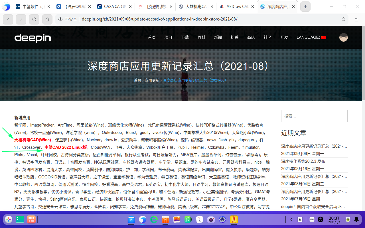 5.大雄CAD、(Wine) 适配Linux;