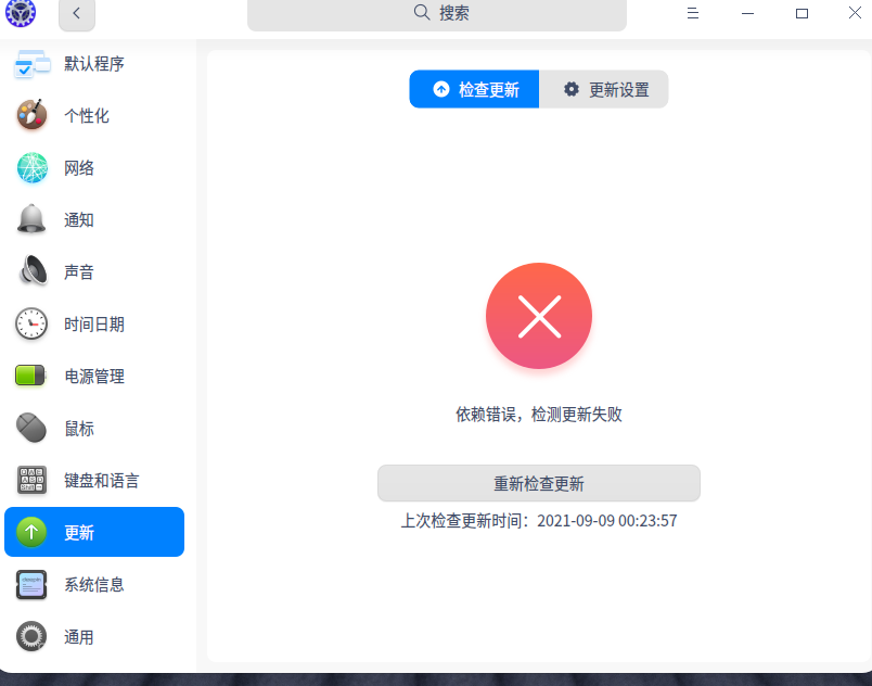 如果有依赖错误的话,从终端用命令更新可以看到是什么软件包依赖什么包。如果可以的话试着把相关软件包卸载后再更新