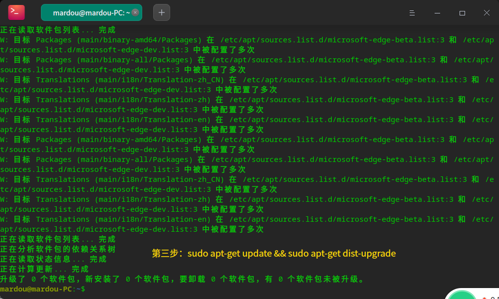 升级了 0 个软件包,新安装了 0 个软件包,要卸载 0 个软件包,有 0 个软件包未被升级。