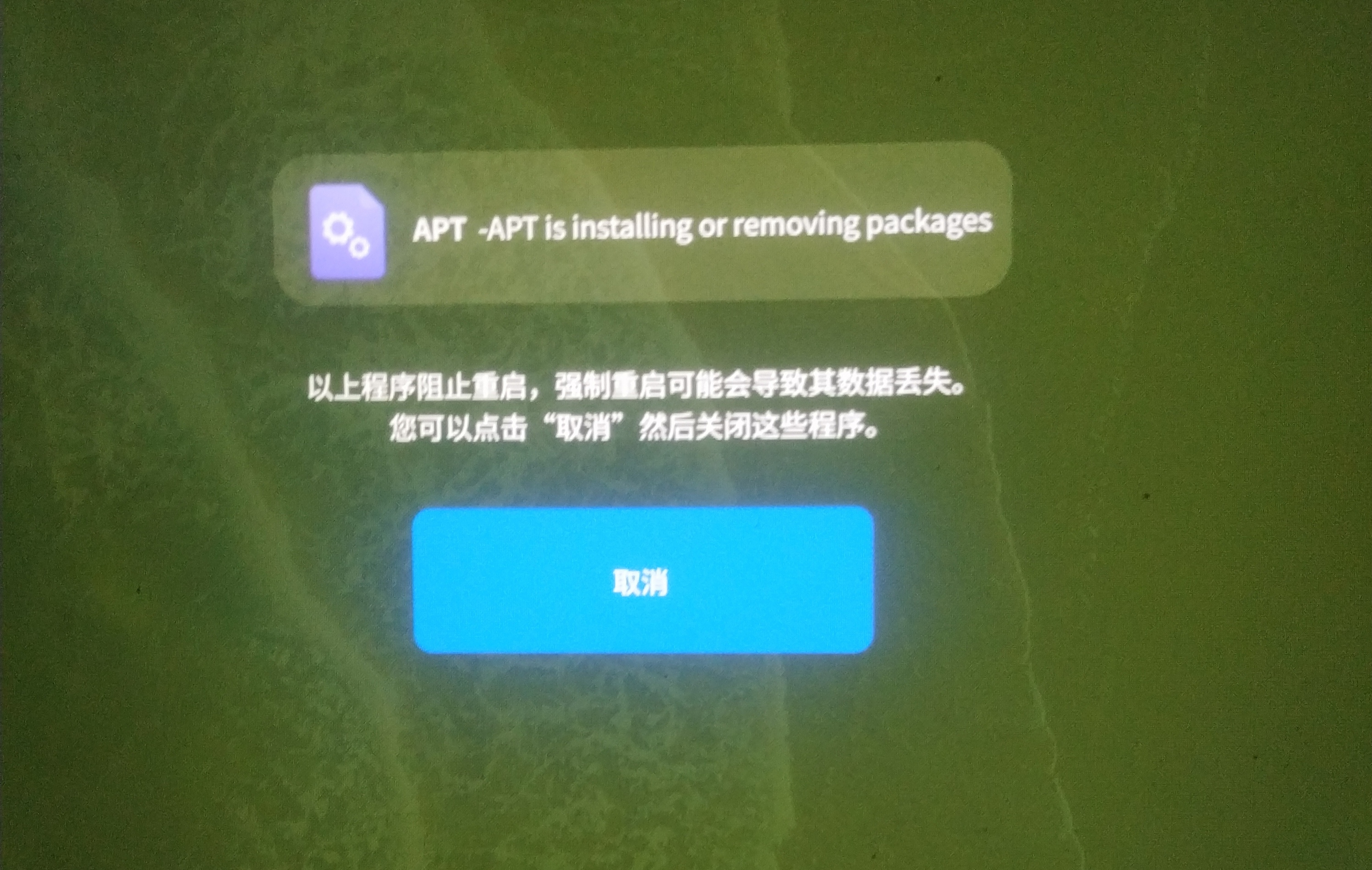用命令sudo rm /var/lib/dpkg/lock,重启后复现。