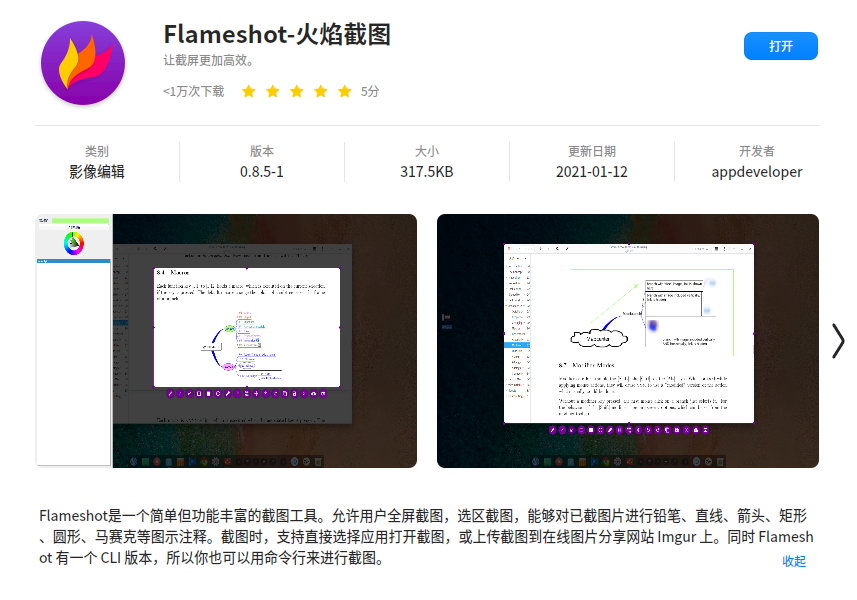 除了自带截图,还可以从商店里安装下面这个,很好用