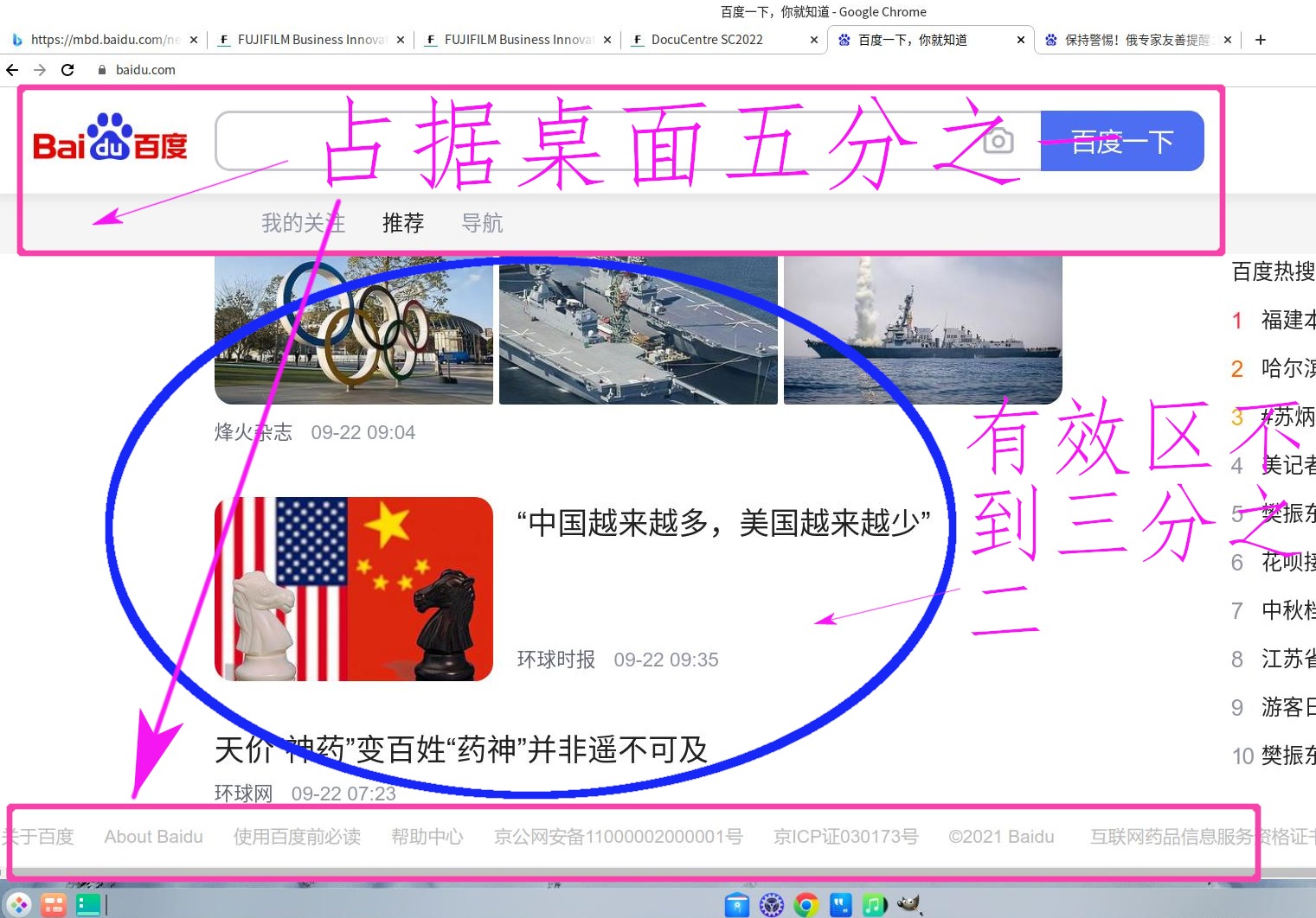 打开百度相关网址时,百度工具条占了三分之一,有效阅读区不到三分之二了,各位大佬有办法解决吗?