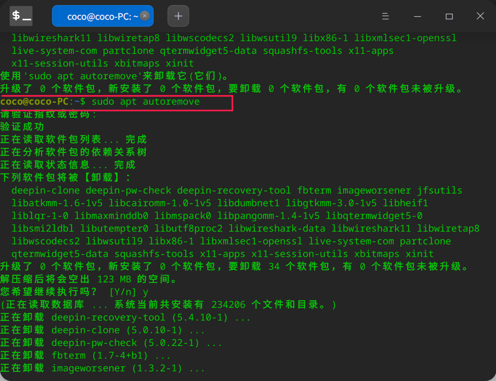 更新结束后:sudo apt autoremove 删掉不需要的文件: